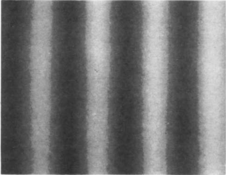 A simple grating is produced by a single sine wave signal from the voltage generator. The brightness of each vertical bar in this simple grating varies in a sinusoidal manner in the horizontal direction across the pattern.