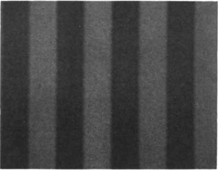 SINUSOIDAL GRATING with a logarithmic variation in spatial frequency and in contrast demonstrates the loss of contrast sensitivity at low and high spatial frequencies. The contrast decreases from the bottom to the top, but at any one height it is the same for all spatial frequencies. When the grating is viewed, it is apparent that the intermediate spatial frequencies are visible to much lower contrast than either the low or the high spatial frequencies.